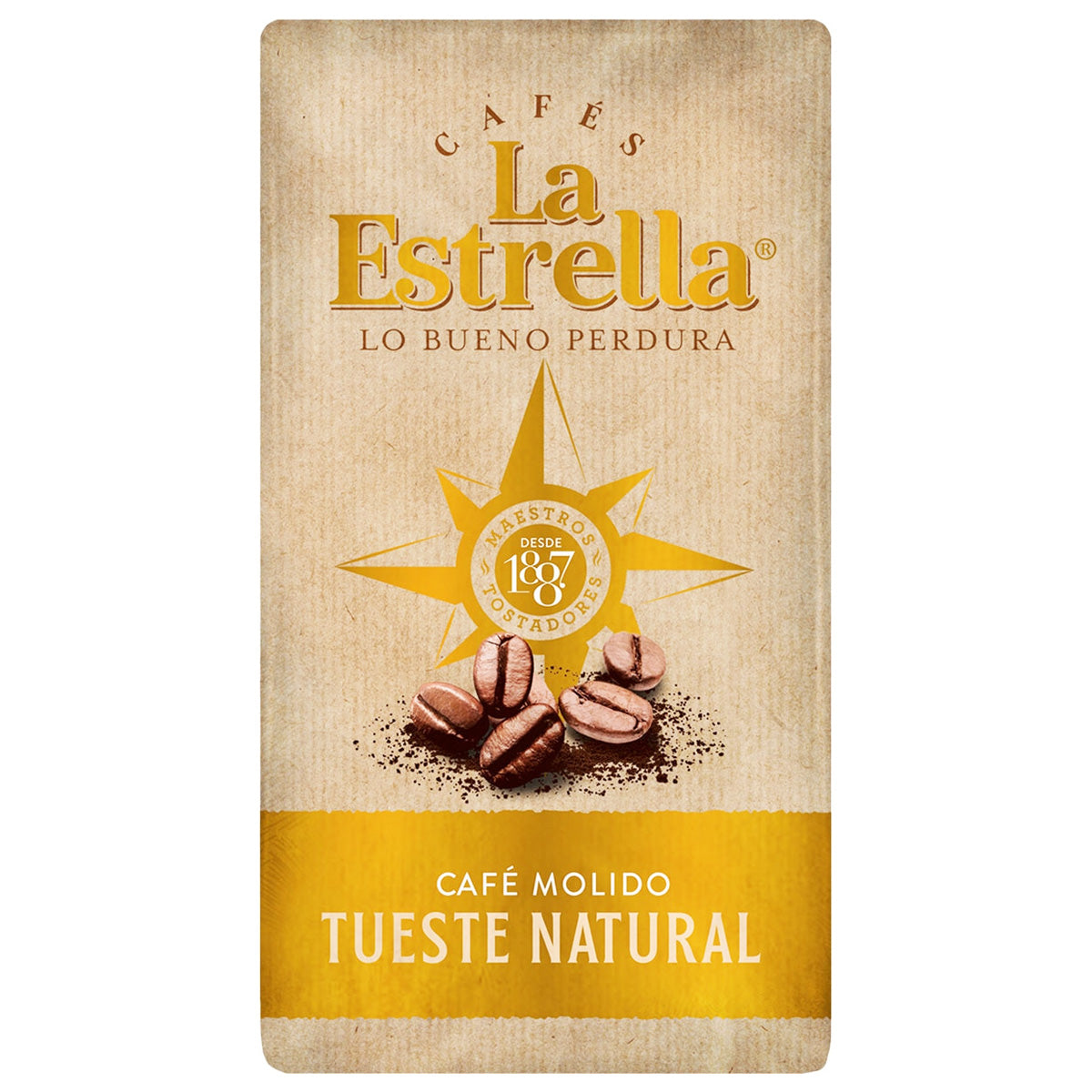 The La Estrella 250g Natural Ground Coffee is made exclusively with natural coffee, offering a balanced, aromatic cup with a clean flavor. Its natural roast highlights the grain's own nuances, with a smooth yet full-bodied profile, ideal for daily enjoyment.
